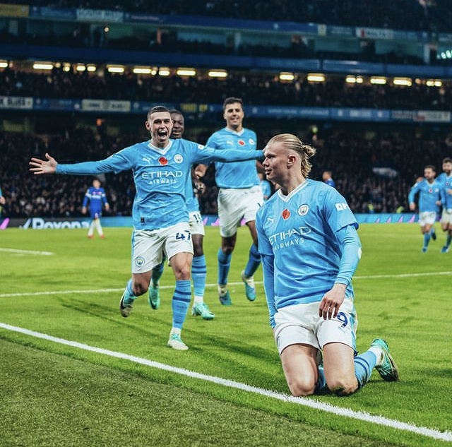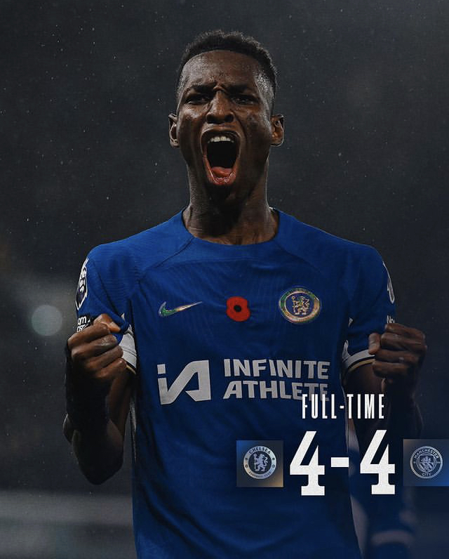 حقق فريق تشيلسى الإنجليزى تعادلاً مثيرًا مع ضيفه مانشستر سيتى، بنتيجة 4 - 4 فى المواجهة التي أقيمت مساء اليوم الأحد، ملعب ستامفورد بريدج، ضمن منافسات الجولة الثانية عشرة من مسابقة الدوري الإنجليزي بالموسم الجارى 2023-2024، قبل توقف البريميرليج بسبب فترة التوقف الدولية التى تقام حتى نهاية الأسبوع المقبل، أحرز النجم النرويجي إيرلينج هالاند الهدف الأول للسيتى عن طريق ركلة جزاء بالدقيقة 25 من زمن المباراة. ونجح تياجو سيلفا في تسجيل هدف التعادل لصالح تشيلسي ضد مان سيتي فى الدقيقة 29 من زمن المباراة. وأضاف رحيم سترلينج، الهدف الثانى لصالح تشيلسى في شباك مانشستر سيتى، بالدقيقة 37 من زمن المباراة، قبل أن يحرز أكانجي التعادل فى الدقيقة الأخيرة من زمن الشوط الأول. وسجل النجم النرويجي إيرلينج هالاند الهدف الثالث في الدقيقة 47، ثم أحرز نيكولاس جاكسون هدف التعادل في الدقيقة 67 من اللقاء. وأحرز رودرى الهدف الرابع لفريق مانشستر سيتي بالدقيقة 86، ثم تعادل بالمر من ركلة جزاء فى الدقيقة الأخيرة من زمن المباراة