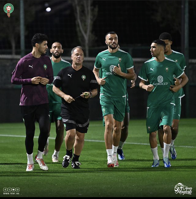 قرر الناخب الوطني، وليد الركراكي، استدعاء كل من جواد ياميق، مدافع فريق الوحدة السعودي، وبنجامين بوشواري، لاعب خط وسط فريق سانت إتيان الفرنسي، للالتحاق بالمنتخب الوطني الأول لكرة القدم، وأوضح بلاغ للجامعة الملكية المغربية لكرة القدم، نشرته على موقعها الرسمي، أن الركراكي وجه الدعوة إلى اللاعبين للانضمام إلى التجمع الإعدادي الذي تخوضه النخبة الوطنية بمركب محمد السادس لكرة القدم، تحسبا للمباراة التي ستجمعها يوم 21 نونبر الجاري بالمنتخب التنزاني بدار السلام، لحساب التصفيات الإفريقية المؤهلة لنهائيات كأس العالم 2026 التي ستجرى بكل من الولايات المتحدة الأمريكية وكندا والمكسيك. من جهة أخرى، أشار المصدر ذاته إلى أن الإصابة، التي تعرض لها الدولي المغربي عز الدين أوناحي، رفقة فريقه أولمبيك مارسيليا، منعته من الانضمام إلى التجمع الذي تخوضه النخبة الوطنية، انطلاقا من اليوم الاثنين. وفي السياق ذاته، أجرى المنتخب الوطني اليوم أول حصة تدريبية ركز فيها الطاقم التقني بقيادة المدرب وليد الركراكي، على ازالة العياء مع إجراء بعض الحصص التي تعتمد على التمرينات القصيرة.