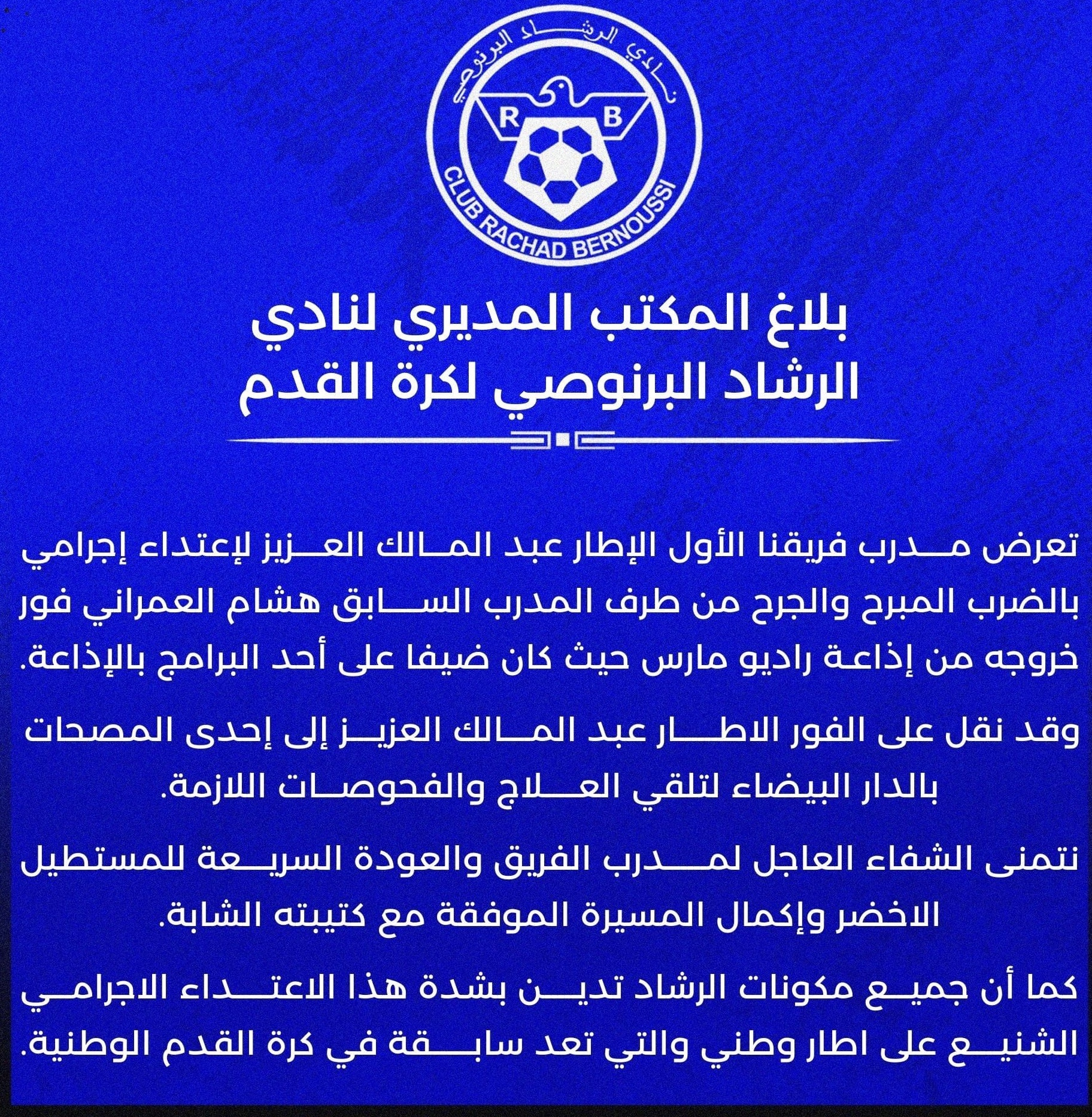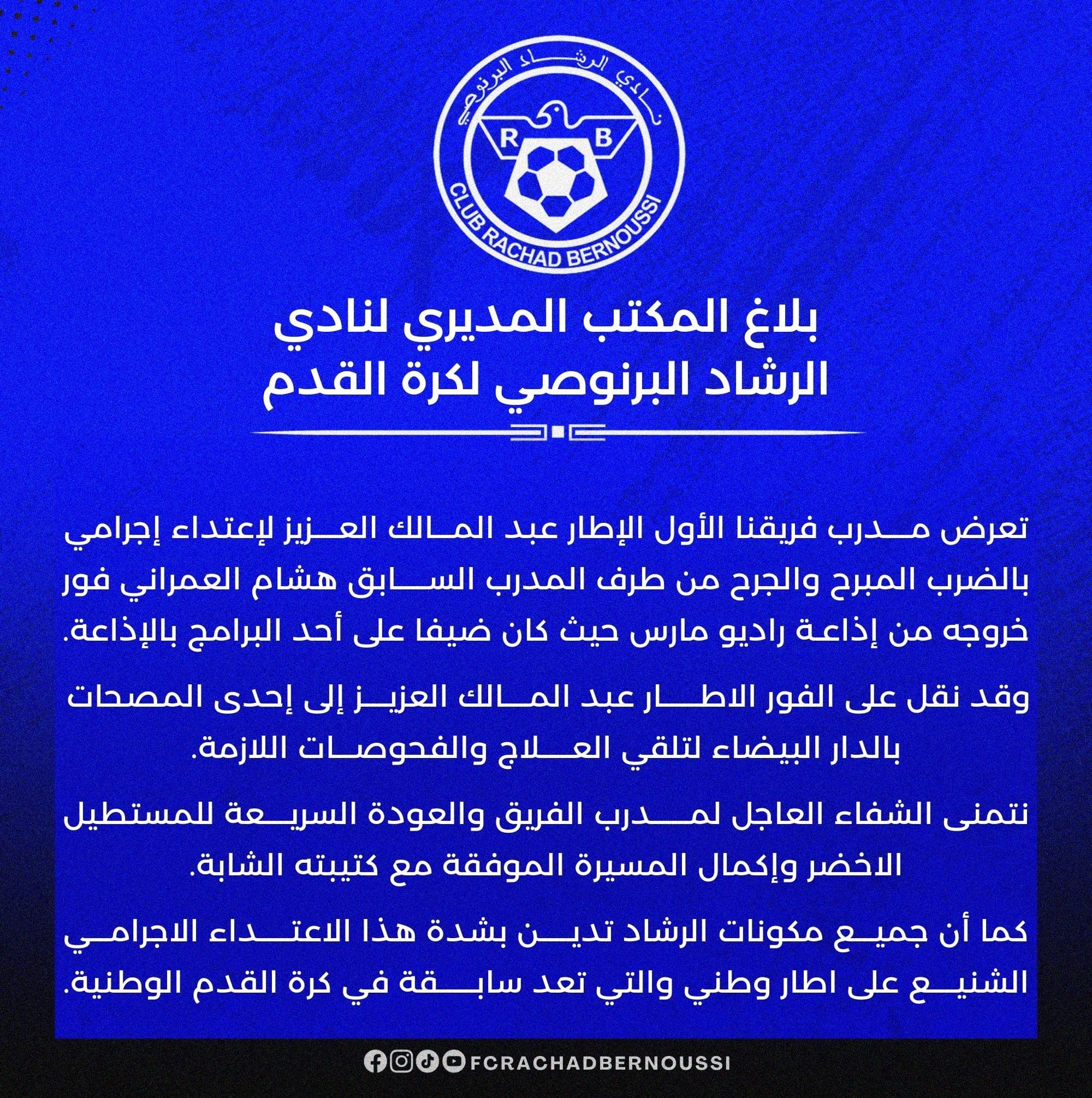 اعتداء همجي على مدرب الرشاد البرنوصي عبد المالك العزيز