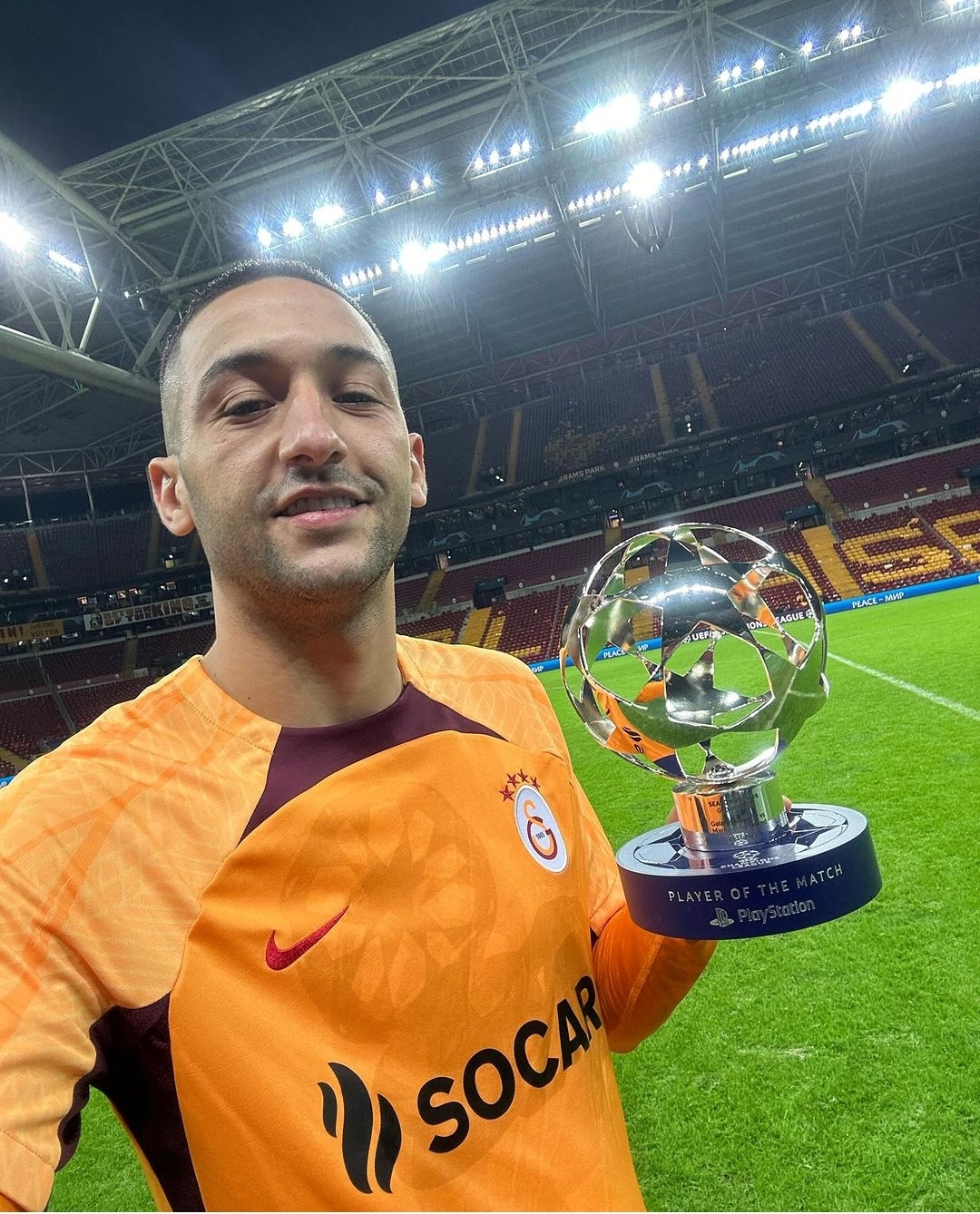 توج النجم الدولي المغربي حكيم زياش مردوده خلال مباراة فريقه غلطة سراي التركي أمام مانشستر يونايتد الإنجليزي، برسم الجولة الخامسة من دور مجموعات دوري أبطال أوروبا، بحصد لقب رجل المقابلة. وتألق زياش بشكل كبير في ليلة التشامبيانز ليغ، بعدما أنقذ غلطة سراي من هزيمة مؤكدة أمام مانشتر يونايتد الإنجليزي، وقاده للتعادل بثلاثة أهداف لكل فريق بتسجيل ثنائية وصناعته لهدف التعادل. وتسلم حكيم زياش جائزة أفضل لاعب في مباراة غلطة سراي ومانشستر يونايتد، بعدما وضع فريقه في وصافة المجموعة الأولى برصيد 5 نقاط بفارق نقطة عن كوبنهاغن الثالث ومانشستر يونايتد الرابع