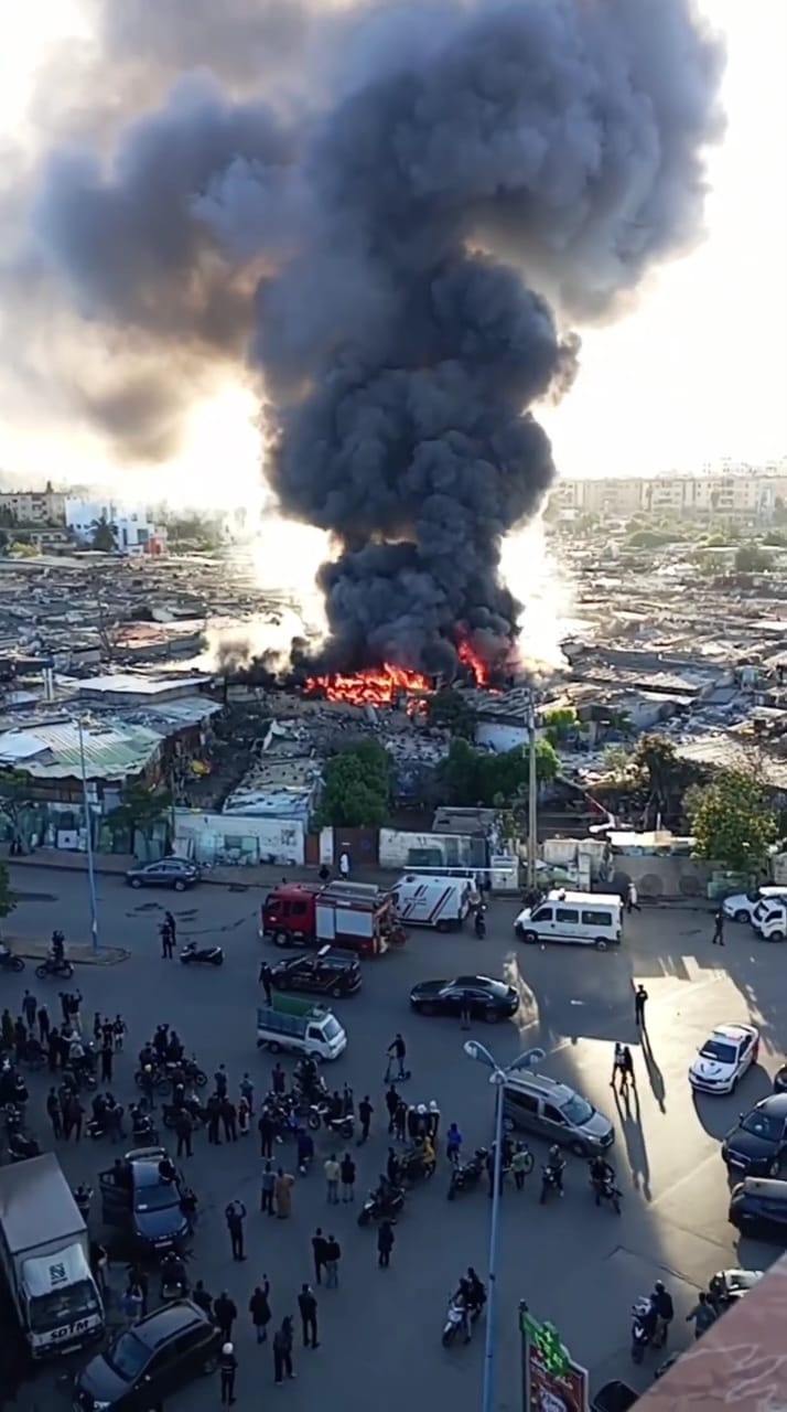 وقد اظهرت الصور أعمدة كثيفة من الدخان تتصاعد من عدة متاجر في منطقة “الجوطية ” الشهيرة، المعروفة بمنتجاتها عالية التقنية والتي عادة ما تكون مزدحمة للغاية، وأشارت بعض المصادر الصحافية أن سوق درب غلف كان مغلقا، ويعتبر يوم الجمعة يوم راحة أسبوعي للتجار.
