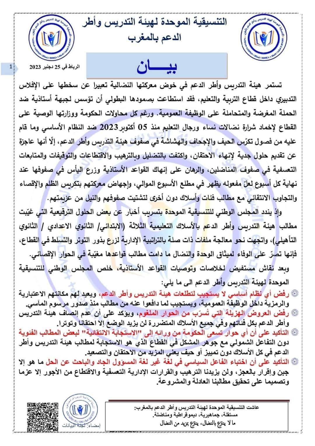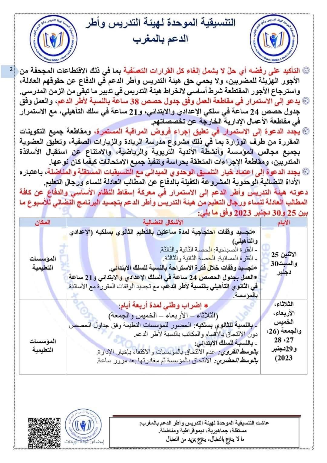 التنسيقيات الاضراب مستمر لاربعة ايام