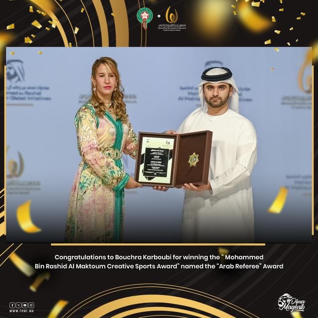 تمكن المنتخب الوطني المغربي من الفوز بجائزة أفضل منتخب عربي لعام 2023، وذلك خلال حفل توزيع جوائز محمد بن راشد آل مكتوم للإبداع الرياضي. وجاء تتويج أسود الأطلس بالجائزة المذكورة، بعد الأداء والمستوى الكبير والإنجاز الذي حققه في كأس العالم الأخيرة في قطر، بوصوله إلى دور النصف نهائي لأول مرة في تاريخ الكرة العربية. وتسلم الجائزة، طارق نجم، عضو الجامعة الملكية المغربية لكرة القدم. ومن جهة أخرى، توجت مفتش الشرطة ممتاز بشرى كربوبي، بجائزة محمد بن راشد آل مكتوم للتفوق الرياضي باعتبارها أفضل حكم عربي لكرة القدم، وذلك خلال الحفل ذاته.