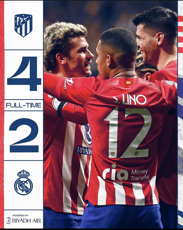 حسم فريق أتلتيكو مدريد مباراة دور ال 16 من بطولة كأس ملك إسبانيا أمام غريمه ريال مدريد، بعد الفوز بأربعة أهداف مقابل هدفين، في اللقاء الذي جمع بينهم، في تمام الساعة العاشرة من مساء الخميس. تمكن فريق أتلتيكو مدريد من إحراز هدف التقدم، في الدقيقة 40 من زمن الشوط الأول عن طريق لاعبه صامويل لينو. وسجل حارس مرمى فريق أتلتيكو مدريد يان أوبلاك هدفاً بالخطأ في مرماه في الدقيقة 45 من زمن المباراة، معطياً فريق ريال مدريد التعادل قبل نهاية الشوط الأول. ونجح ألفارو مورتا، في إعادة التقدم لفريق أتلتيكو مدريد مرة أخرى في الدقيقة 57 من عمر المباراة، ليعيد اللاعب خوسيلو ماتا، المباراة لنقطة التعادل من جديد بعد إحرازه هدف لصالح الفريق الملكي في مرمى فريق أتلتيكو في الدقيقة 82 من زمن الشوط الثاني، لينتهي الوقت الأصلي للمباراة بنتيجة التعادل الإيجابي بهدفين لكل فريق. وشهد الشوط الأول الإضافي من المباراة، تسجيل أنطوان جريزمان الهدف الثالث لصالح أتلتيكو مدريد في الدقيقة 10 من زمن الشوط الإضافي الأول. وسجل اللاعب ريكيلمي هدف قتل المباراة، في الدقيقة 13 من زمن الشوط الإضافي الثاني، وقبل نهاية المباراة بدقيقتين، لتنتهي المباراة بفوز أتلتيكو بأربعة أهداف مقابل هدفين.