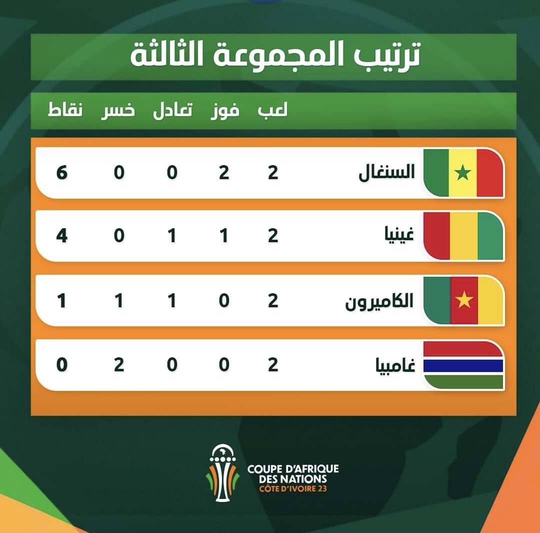 انتزع منتخب غينيا لكرة القدم انتصارا ثمينا بالفوز على غامبيا بنتيجة 1 / صفر مساء الجمعة، في الجولة الثانية بالمجموعة الثالثة لكأس أمم إفريقيا للعبة ذاتها والتي تقام في كوت ديفوار. أحرز أجيبو كامارا هدف المباراة الوحيد في الدقيقة الـ69، ليرفع منتخب غينيا رصيده إلى أربع نقاط في الوصافة ويقترب خطوة كبيرة نحو التأهل إلى دور الـ16. أما منتخب غامبيا فقد خسر مباراته الثانية على التوالي، بعد سقوطه أمام السنغال حامل اللقب في الجولة الأولى بثلاثية دون رد؛ ليتذيل الترتيب، ويصبح مهددا بقوة بالخروج المبكر أمامه الكاميرون بنقطة واحدة بالتعادل مع غينيا 1/1 في الجولة الأولى.