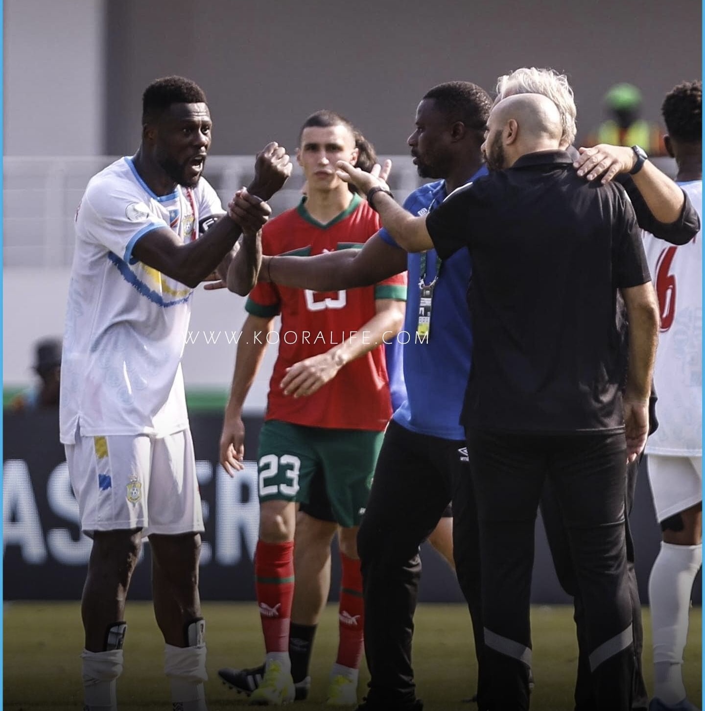 اكتفى المنتخب الوطني المغربي لكرة القدم بالتعادل مع منتخب الكونغو الديمقراطية بنتيجة 1-1، اليوم الأحد، على أرضية ملعب لوران بوكو بمدينة سان بيدرو الإيفوارية، ضمن مباريات الجولة الثانية بالمجموعة السادسة لكأس إفريقيا للأمم. مع بداية اللقاء كاد يوسف النصيري يفتتح التسجيل عبر ضربة رأسية، غير أن حارس مرمى الكونغو الديمقراطية تصدى للكرة بصعوبة. ونجح أشرف حكيمي في تسجيل الهدف الأول، في الدقيقة 6، عبر ضربة ركنية نفذها حكيم زياش. وكاد الكونغوليون يعادلون الكفة في الدقيقة 33 بعد ضربة زاوية، حيث لمس العميد رومان سايس الكرة فمرت قريبة من القائم الأيمن للحارس بونو. وقد حصل منتخب الكونغو الديمقراطية من خلال اللقطة نفسها على ركلة جزاء أهدرها سيدريك باكامبو بعد اصطدام الكرة بالجهة الخارجية للقائم الأيمن لمرمى أسود الأطلس. مجريات الشوط الثاني بدأت بهجمات متبادلة بين المنتخبين المغربي والكونغولي، لكنها لم تترجم إلى أهداف خلال الدقائق الـ15 الأولى. وبعد محاولات هجومية متبادلة باحتشام تمكن منتخب الكونغو الديمقراطية من تعديل الكفة، في الدقيقة 77، بتسديدة من وسط منطقة الجزاء للاعب سيلاس. وبهذا التعادل يرتفع رصيد أسود الأطلس إلى 4 نقاط، معززين صدارتهم للمجموعة السادسة، في حين بلغ رصيد منتخب الكونغو الديمقراطية نقطتين.
