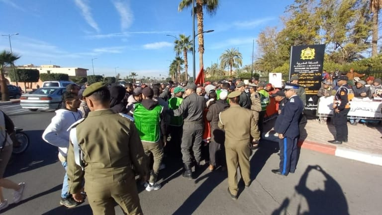 حج المئات من متضرري زلزال الحوز بإقليم شيشاوة من جماعات امين دونيت، اداسيل، اسيف المال، دائرة مجاط، مشيا على الاقدام الى مقر ولاية جھة مراكش اسفي من يوم الثلاتاء 23 يناير، وبعد حوالي 24 ساعة، وصل المحتجون الاوائل امام ولاية جھة مراكش اسفي ليبلغوا احتجاجھم على الاقصاء والتھميش وصعوبة العيش والحكرة وغياب التواصل معھم من طرف المسؤولين على ساكنة المناطق المتضررة وغياب شبه تام للتعليم الابتدائي والعلاج وفقدان كل موارد العيش ،ويشتكون كذلك من الزبونية والمحسوبية واقصاء اغلب المتضررين من الدعم الذي وعدت به الحكومة المغربية .