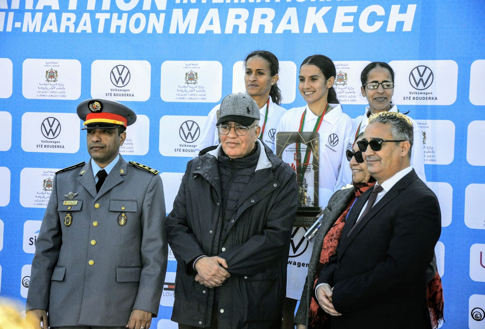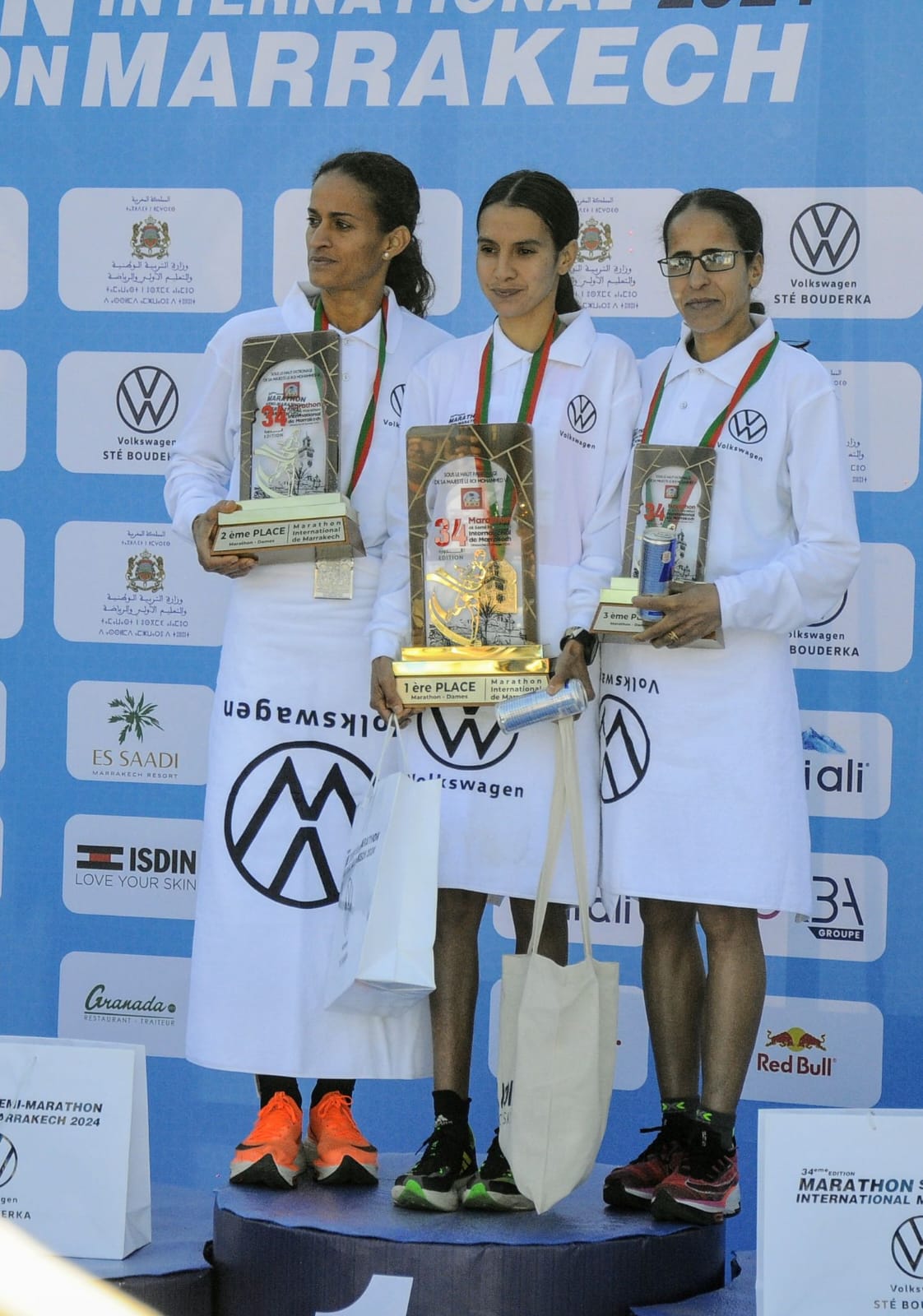 عاشت عروسة الجنوب يوما رياضية مميزا ،متمثلا في ماراطون مراكش الذي يطفئ شمعته 34 بعدما أسدل الستار عن مجرياته اليوم تحت انظار متابعة وطنية ودولية فاقت التوقعات بالنظر لسمعته وبعدمااصبح حدثا عالميا بالنظر لعوامل كثيرة لاشك أن المدينة بتاريخها وعراقتها واصالتها كوجهة السياحة العالمية ساهمت بشكل كبير في هذا الرصيد، ونجح العداء الكيني سامي كيتوارا من الفوز بلقبه ، الذي جرى صباح اليوم الأحد، تحت الرعاية السامية لصاحب الجلالة الملك محمد السادس. وقطع العداء الكيني مسافة السباق (195ر42 كلم) في زمن قدره 2س و7د و55ث، متفوقا على المغربيين عمر ايت شيتاشن 2 س8د و45 ث ومصطفى هدادي 2س و09 د و 38ث,ولدى السيدات، أحرزت العداءة المغربية، كوثر فركوسي، لقب هذه الدورة بتوقيت 2 س و27د و58ث، متقدمة على مواطنتيها فتيحة بنشتكي (2س و28د و29ث)، وكوثر بوعسرية (2س و29د و17ث). وفي نصف الماراطون، حل العداء المغربي، محسن أوطلحة، في المركز الأول، قاطعا السباق في زمن قدره 1 س و1د و34ث، متقدما على مواطنيه محمد اليوسفي (1س و1 د و58ث) وبوعزة قسوي (1س و2 د و3 ث). أما لدى السيدات، فقد عاد اللقب للعداءة المغربية، رحمة الطاهري، بتوقيت 1 س و8د و34ث، متقدمة على مواطنتيها كوثر كحاز (1س و11 د و6ث) وحنان بوعكاد (1س و12 د و7 ث). حضر حفل توزيع الجوائز، على الخصوص، والي جهة مراكش-آسفي، فريد شوراق، وعدد من المنتخبين الجهويين والمحليين، بالإضافة إلى شخصيات مدنية وعسكرية. وعبر العداء الكيني، سامي كيتوارا، في تصريح لوكالة المغرب العربي للأنباء، عن سعادته بالفوز بلقب الدورة 34 لماراطون مراكش الدولي، معربا عن أمله في تحقيق توقيت أفضل في السباقات المقبلة.