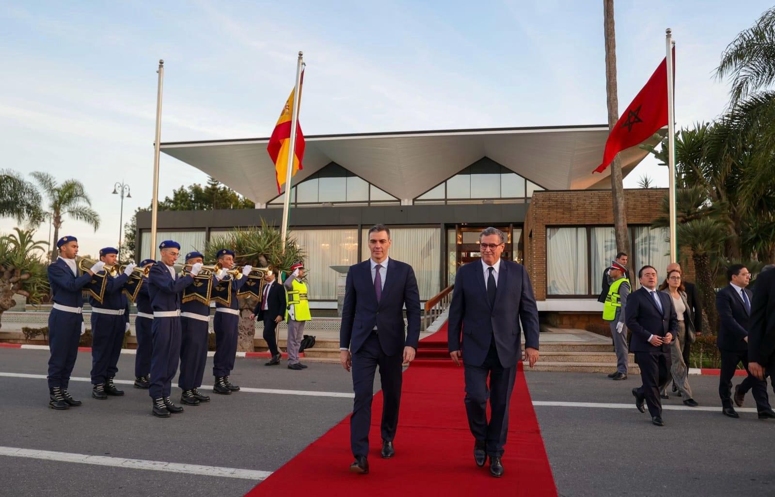غادر رئيس الحكومة الإسبانية، بيدرو سانشيز، المغرب، مساء اليوم الأربعاء، في ختام زيارة عمل للمملكة. وكان في وداع سانشيز، بمطار الرباط سلا رئيس الحكومة، عزيز أخنوش. وبعد أن استعرض تشكيلة من القوات الملكية الجوية، التي أدت التحية، تقدم للسلام على سانشيز، وزير الشؤون الخارجية والتعاون الإفريقي والمغاربة المقيمين بالخارج ناصر بوريطة، ووالي جهة الرباط-سلا-القنيطرة، عامل عمالة الرباط، محمد اليعقوبي، وعامل عمالة سلا عمر التويمي، والقائم بالأعمال في السفارة الإسبانية بالمغرب بورخا مونتسيموس، ورئيس المجلس الجماعي لمدينة سلا عمر السنتيسي، وسفيرة المغرب في إسبانيا كريمة بنيعيش. ورافق رئيس الحكومة الإسبانية، في هذه الزيارة وزير الخارجية الإسباني خوسي مانويل ألباريس. وكان الملك محمد السادس قد استقبل، في وقت سابق اليوم، بالقصر الملكي بالرباط، رئيس حكومة المملكة الإسبانية. وبمناسبة هذا الاستقبال، جدد رئيس الحكومة الإسبانية للملك، التأكيد على موقف إسبانيا الوارد في البيان المشترك لأبريل 2022، الذي يعتبر المبادرة المغربية للحكم الذاتي بمثابة الأساس الأكثر جدية وواقعية ومصداقية من أجل تسوية هذا الخلاف. وأعرب الملك عن شكره لإسبانيا على هذا الموقف الجديد البناء والهام. وخلال هذا الاستقبال، أكد الملك، وبيدرو سانشيز، على الآفاق المتفردة للتعاون المفتوحة أمام البلدين الجارين، والتي يمثل التنظيم المشترك مع البرتغال لكأس العالم لكرة القدم 2030 رافعة إضافية لتعزيزها. وفي هذا الصدد، أعرب رئيس الحكومة الإسبانية عن إشادته وتأكيده على اهتمام إسبانيا بالمبادرات الاستراتيجية التي أطلقها الملك، خاصة مبادرة البلدان الإفريقية المطلة على المحيط الأطلسي، والمبادرة الملكية لتعزيز ولوج بلدان الساحل إلى المحيط الأطلسي، وكذا أنبوب الغاز الإفريقي الأطلسي نيجيريا المغرب. كما أقام الملك مأدبة غداء على شرف رئيس الحكومة الاسبانية بيدرو سانشيز والوفد المرافق له، ترأسها أخنوش. وتندرج زيارة رئيس الحكومة الإسبانية في إطار استمرارية الدينامية التي أطلقتها المرحلة الجديدة للعلاقات الثنائية، والتي تم تدشينها منذ اللقاء الملك، ورئيس الحكومة الإسبانية، في أبريل 2022، والذي توج باعتماد البيان المشترك بين البلدين. وتتواصل هذه الدينامية بشكل يبعث على الارتياح. وتتميز بتعزيز التعاون والتنسيق والشراكة في كافة المجالات على أساس مبادئ الثقة والاحترام المتبادل، والطموح، وحسن الجوار والوفاء بالالتزامات.