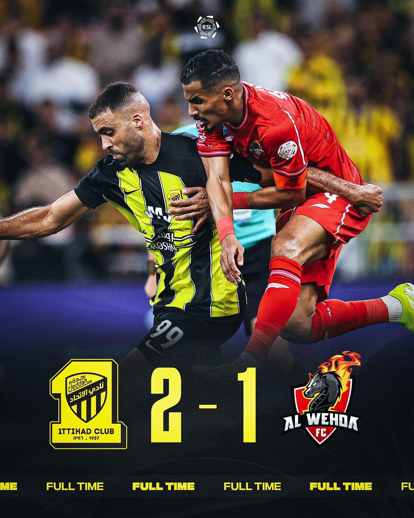 قاد الدولي المغربي عبدالرزاق حمدالله فريقه اتحاد جدة للفوز على ضيفه الوحدة بهدفبن لواحد في المباراة التي جمعتهما اليوم الإثنين على أرضية ملعب الملك عبدالله بجدة الجوهرة المشعة. وافتتح الوحدة التسجيل عبر النيجيري أوديون إيغالو في الدقيقة 35 قبل أن يدرك حمدالله التعادل في الدقيقة 84 من ضربة جزاء ويسجل الثاني في الأنفاس الأخيرة من المباراة. وشهدت المباراة إهدار بنزيمة ركلة جزاء تصدى لها الحارس الدولي المغربي منير المحمدي في الدقيقة 45. ورفع الاتحاد رصيده إلى 37 نقطة في المركز الخامس، بينما تجمد رصيد الوحدة عند 26 نقطة في المركز التاسع.
