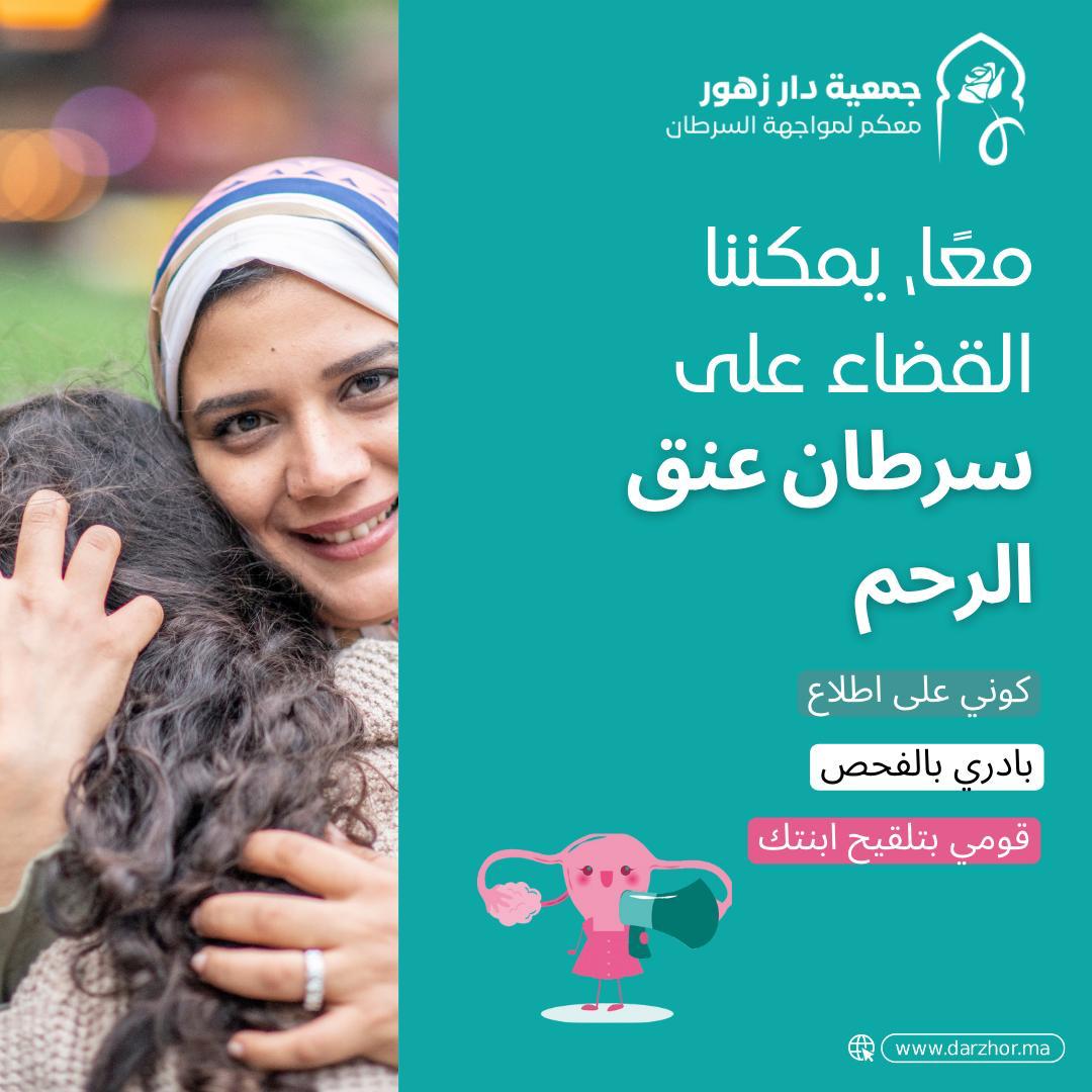 تطلق جمعية دار زهور حملة تحسيسية للوقاية من سرطان عنق الرحم وتعبئة الشركاء الطبيين والشخصيات المؤثرة لإعلام وتوعية النساء والفتيات وأسرهن حول مخاطر هذا المرض وطرق الوقاية منه وأهمية الفحص المنتظم.