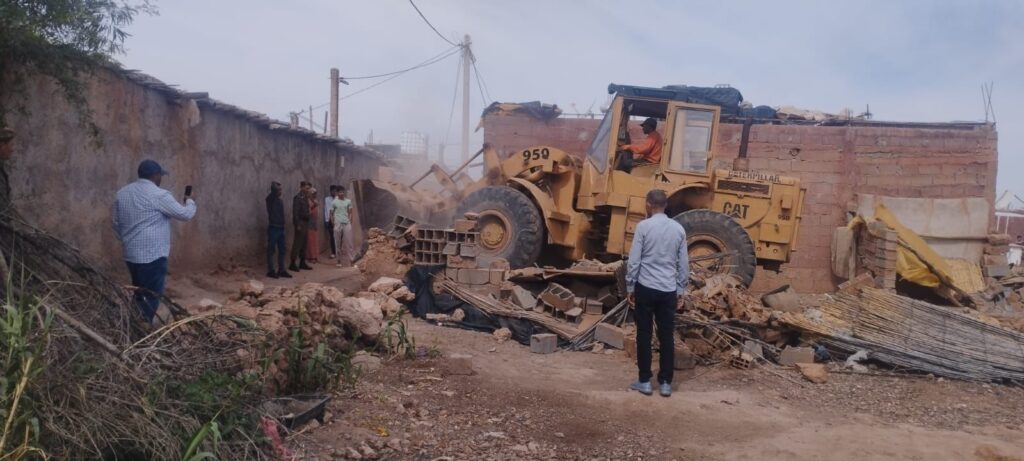 أقدمت السلطات المحلية التابعة للملحقة الإدارية سيدي غانم بمراكش يوم الخميس 18 أبريل الجاري على هدم مجموعة من البنايات العشوائية بدواري فيلالة و درع الرمت، عبارة عن زرايب للمواشي و الدواب و أخرى بيوتات طينبة، و تم إزالة خمسة و عشرين منها ، العملية عرفت حضور قائد الملحقة الإدارية سيدي غانم و رجال القوات المساعدة و أعوان السلطة. و يأتي ذلك في سياق المجهودات التي تبذلها الوزارة الوصية و السلطات المحلية لمدينة مراكش قصد القضاء على آفات السكن العشوائي.