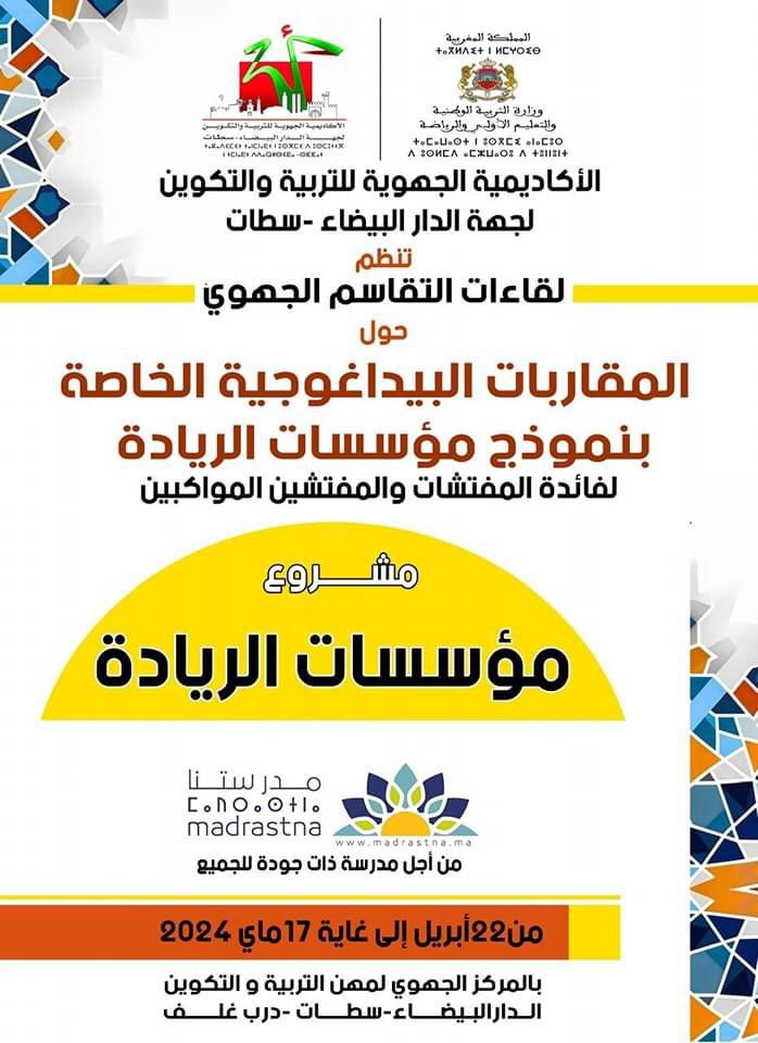 السيد عبد المومن طالب مدير الأكاديمية الجهوية للتربية والتكوين لجهة الدار البيضاء سطات يترأس افتتاح لقاءات التقاسم الجهوي حول المقاربات المعتمدة بمؤسسات الريادة لتكوين المفتشات والمفتشين المواكبين
