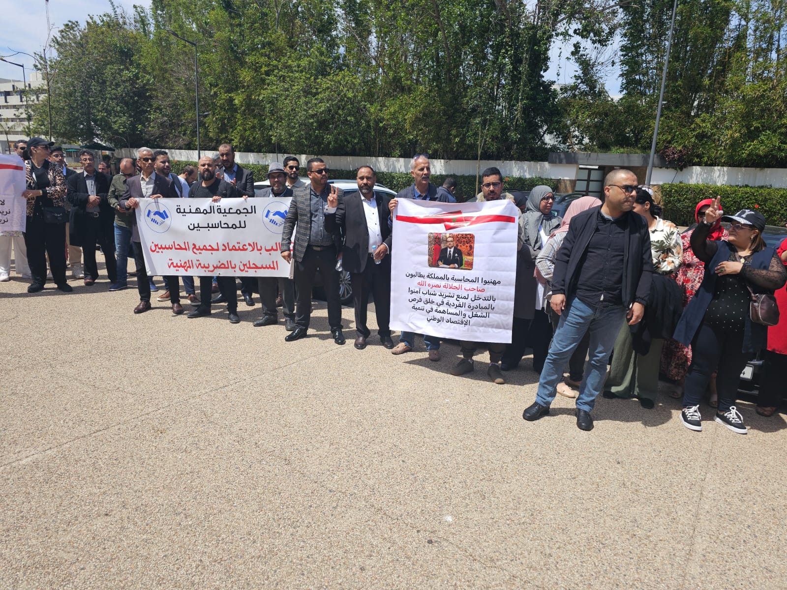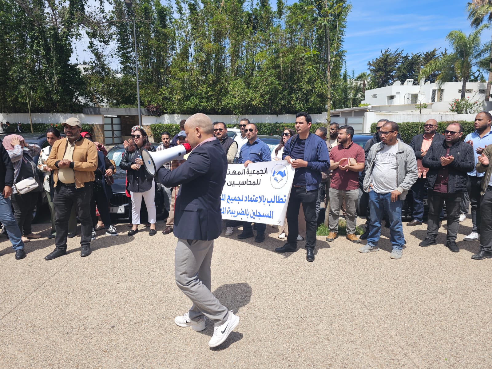 وقفة احتجاجية صباح يومه الاربعاء 22 52024 للمحاسبين المهنيين بالمغرب أمام مديرية المنشآت العامة والخصوصة التابعة لوزارة الاقتصاد و المالية من أجل المطالبة بإدماج جميع المحاسبين المسجلين بالضريبة المهنية حسب القانون المتمم له 19-53