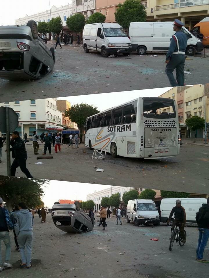 تعرض جمهور الوداد البيضاوي بعد رجوعه من آسفي الى وابل من الحجارة من طرف شباب من جمعة سحيم مما أدى الى انقلاب سياراتين اضافة الى تخريب حافلة وتحطيم زجاج السيارات والى هذه اللحظات مازالت الأمور خارجة عن السيطرة ،وهناك من الجمهور الودادي من فضل المكوث في آسفي تفادياً لما لا تحمد عقباه ،والصور تعبر عن الخراب الذي تعرضت له سيارات المواطنين الذين كانوا في الموقع اثناء اندلاع الشغب