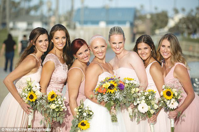 أول عروس تتحدى مرضها وتظهر صلعاء في حفل زفافها