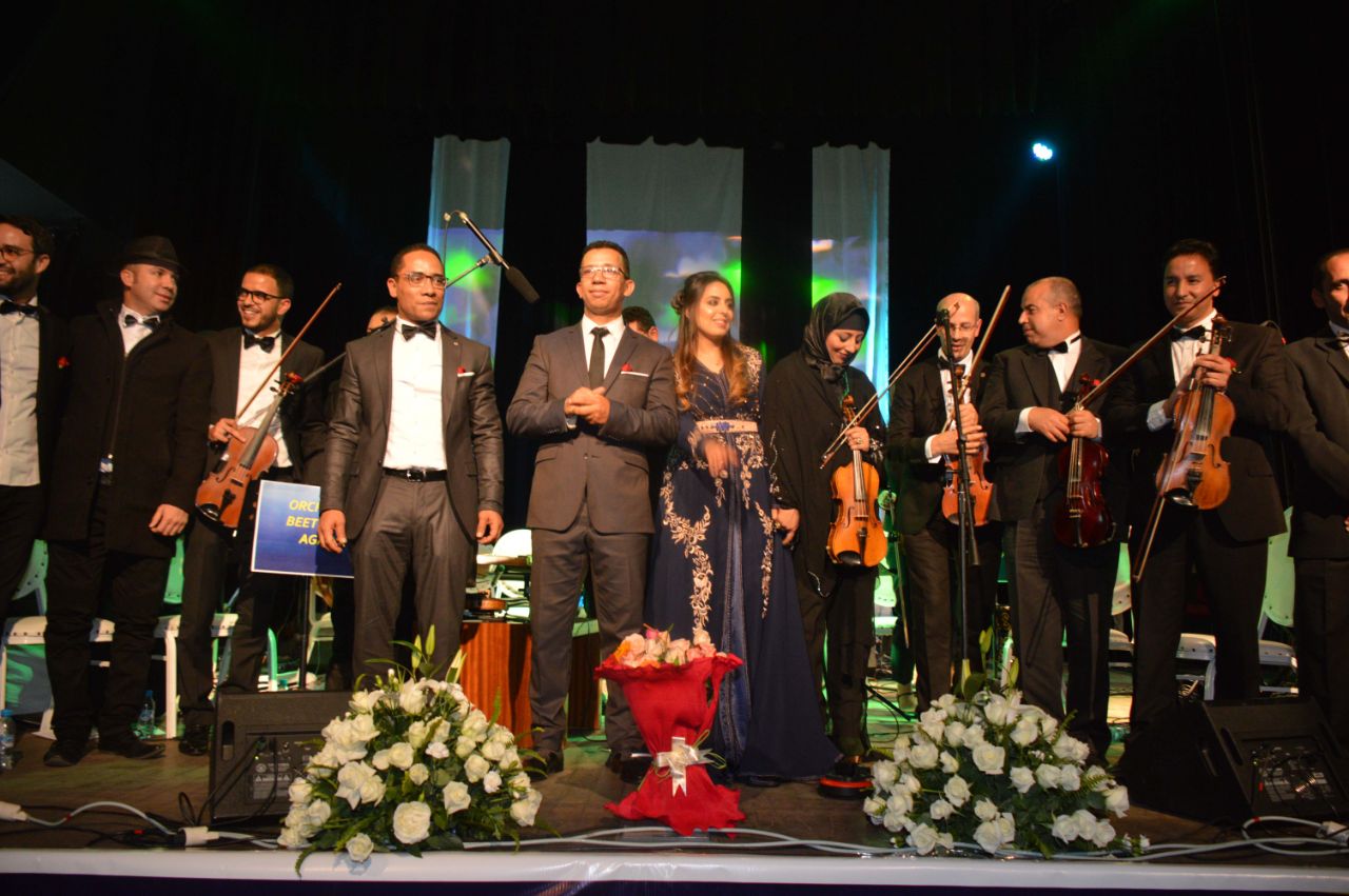 الأمسية الفنية التي انطلقت في حدود الساعة الثامنة والنصف مساءا والمنظمة من طرف جمعية بيتهوفن بشراكة مع مؤسسة بيتهوفن للموسيقى وبتعاون مع مندوبية وزارة الاتصال وبلدية اكادير وعمالة اكادير اداوتنان عرفت حضور جماهيري فاق كل التوقعات نظرا للوجوه الفنية الكبيرة التي أحيث الأمسية مما جعل قاعة إبراهيم تمتلئ عن آخرها بساكنة منطقة سوس وزوار المدينة.