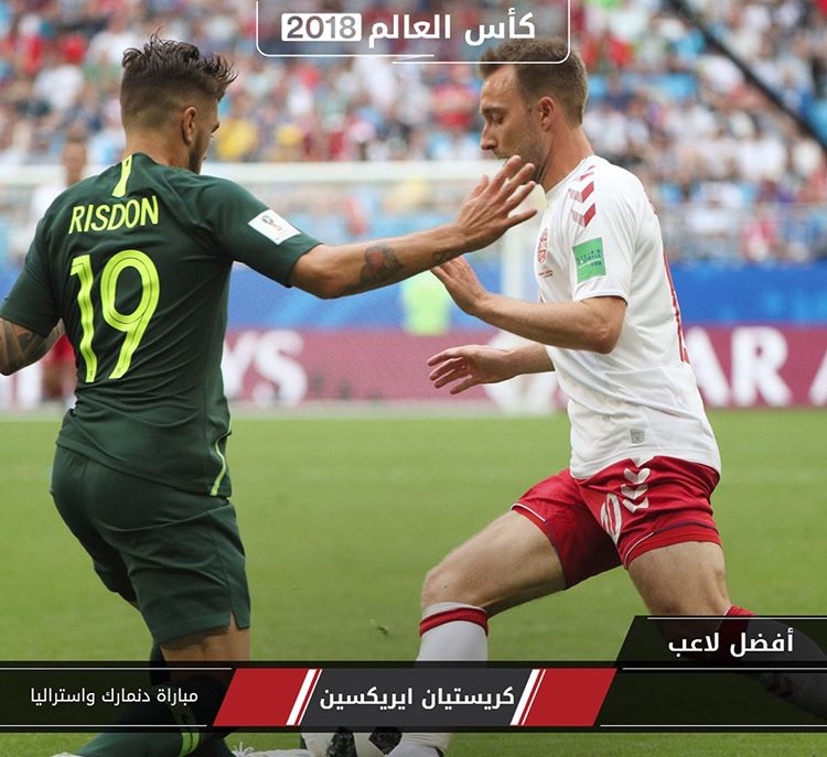 تعادل منتخب الدنمارك مع نظيره الأسترالي بهدف لكل منهما، فى المباراة التى جمعتهما اليوم الخميس 21 يونيو، ضمن منافسات الجولة الثانية في المجموعة الثالثة بمونديال روسيا 2018. وسجل هدف الدنمارك اللاعب كريستيان إريكسن فى الدقيقة 8، قبل أن يعادل اللاعب ميلى جيديناك للمنتخب الأسترالي فى الدقيقة 38 من ركلة جزاء، بعد العودة إلى “تقنية الفيديو” التى كشفت لمسة يد ضد أحد لاعبى الدنمارك داخل منطقة الجزاء. وبهذه النتيجة تكتفي الدانمارك بالمرتبة التانية ب أربعة نقط وراء فرنسا التي تمكنت من الفوز على البيرو متصدرتاً المجموعة ب ستة نقط وتظمن المرور الى الدور الثاني