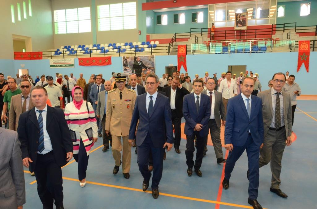 قام عبد اللطيف شدالي عامل إقليم خريبكة يوم الخميس 26 يوليوز 2018 في سياق احتفالات الشعب المغربي بالذكرى 19 لعيد العرش المجيد بتدشين وإعطاء انطلاقة مشاريع للتنمية الاقتصادية والاجتماعية بالإقليم حيث أشرف بمدينة أبي الجعد على تدشين قاعة مغطاة للرياضات بنيت على مساحة 1900 متر مربع بغلاف مالي قدره 19.2 مليون درهم وذلك بمساهمة من المبادرة الوطنية للتنمية البشرية، المديرية العامة للجماعات المحلية بوزارة الداخلية، وزارة الشباب والرياضة، والمجلسين الجهوي والإقليمي إضافة إلى جماعة أبي الجعد. وتضم القاعة المغطاة فضاء متعدد الرياضات، مدرجات بطاقة استيعابية تصل ل 800 مقعد، منصة شرفية، قاعة للتمريض، قاعة للصحافة بالإضافة إلى مرافق أخرى..وتعتبر هذه المنشآة أول فضاء رياضي بالمعايير الحديثة لممارسة مختلف الرياضات و ستساهم في تعزيز البنية التحتية الرياضية بالمدينة وبالتالي إنعاش التنشيط الرياضي بها. وفي سياق آخر وفي إطار تنزيل مكونات برنامج تقليص الفوارق الاجتماعية والترابية بالمجال القروي، أعطى عامل الإقليم انطلاقة أشغال كهربة 38 دوار تهم استفادة 1026 كانون بغلاف مالي يناهز 42 مليون درهم ساهمت في تمويله كل من المبادرة الوطنية للتنمية البشرية ، المجلس الجهوي ، المكتب الوطني للكهرباء والماء الصالح للشرب / قطاع الكهرباء، والمستفيدون من المشروع.. وستشمل هذه العملية 10 جماعات : أولاد عبدون، بئر مزوي المنتميتان لدائرة خريبكة ، آيت عمار، بني سمير، أولاد بوغادي،أولاد عيسى، والمعادنة المنتمية لدائرة وادي زم، بني بتاو، بني زرنتل، والرواشد الواقعة بدائرة أبي الجعد.
