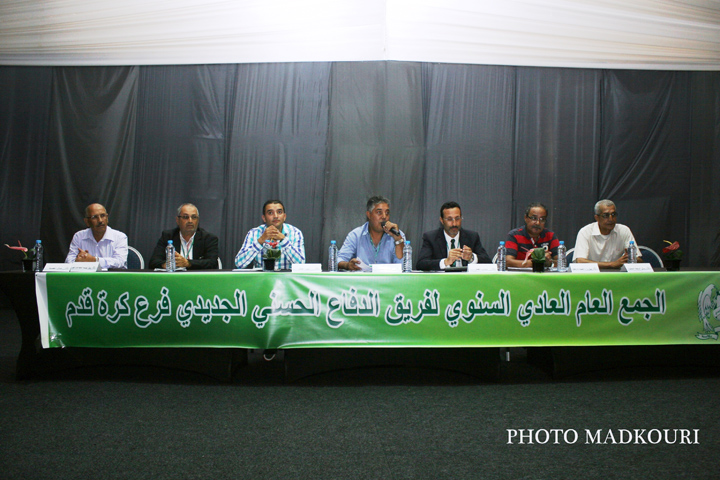 عقد فريق الدفاع الحسني الجديدي لكرة القدم، مساء اليوم الجمعة 3 اكتوبر الجاري بالغولف الملكي بضواحي مدينة الجديدية ، جمعه العام العادي بحضور رئيس الفريق سعيد قبيل وممثل وزارة الشباب والرياضة السيد سفيان الهيلالي وممثل عصبة دكالة والجامعة , السيد بوعبيد بوبكر وممثل السلطة السيد احمد بالكروم وأمين مال الفريق الدكتور عبداللطيف المقتريض والكاتب العام السيد عبد الاله بالكحل وأعضاء المكتب المسير للفريق وبرلمان الفريق , و الفعاليات الإعلامية والجمعوية .