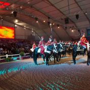 إثر ذلك، تتبع صاحب السمو الملكي بالحلبة الرئيسية للقفز على الحواجز عروضا قدمتها فرقة من الحرس الملكي، التي قامت باستعراض كوريغرافي غني بالألوان يمتطي خلاله 60 فارسا وموسيقيا خيولا بربرية وعربية بربرية قاموا بلوحات فنية متناسقة على إيقاع موسيقى قدمتها جوقة خيالة الحرس الملكي.