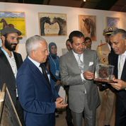 وعند مدخل القاعة الشرفية بالمعرض، تقدم للسلام على صاحب السمو الملكي الأمير مولاي رشيد، كل من صاحب السمو الملكي الأمير عبد العزيز بن أحمد بن عبد العزيز آل سعود، رئيس منظمة الجواد العربي، والشيخ محمد بن فالح آل ثاني، رئيس نادي سباق الخيل والفروسية القطري.