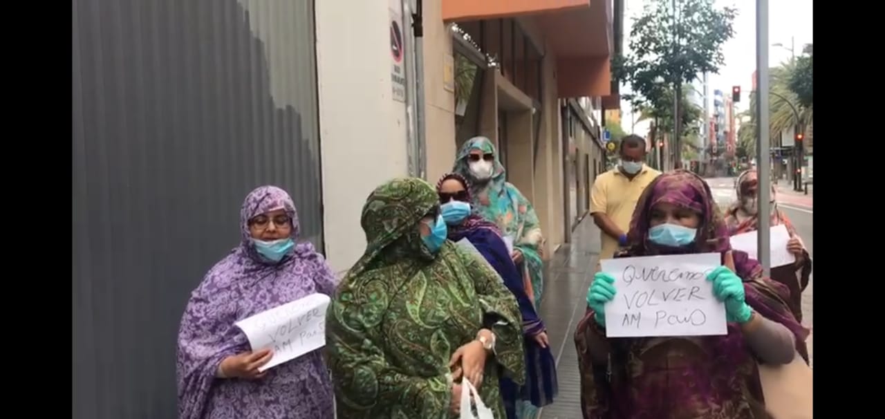 نظم عشرات العالقين من ساكنة الأقاليم الجنوبية بين مدينتي العيون والسمارة، يوم امس الأربعاء وقفة إحتجاجية أمام القنصلية المغربية بمنطقة "لاس بالماس الاسبانية، وذلك للمطالبة بتدخل السلطات المغربية والسماح لهم بدخول التراب الوطني بعد حوالي 3 أشهر من تواجدهم بالديار الأوروبية بسبب إصدار المملكة قرار تعليق جميع الرحلات والخطوط الجوية بعد ظهور أزمة وباء كوروناوطالب المواطنوان العالقون من ساكنة الأقاليم الجنوبية، والذين يقدر عددهم بأكثر من 200 شخص، وزارة الشؤون الخارجية والتعاون وجميع السلطات والمتدخلين بغية التدخل العاجل وحل المشكل والسماح لهم بالعودة إلى ديارهم وأسرهم