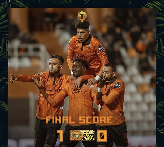 حمزة أبورزوق، هداف الماص، يحرز هدفه الخامس في منافسة كأس الكاف أمام موتيما من الكونغو...