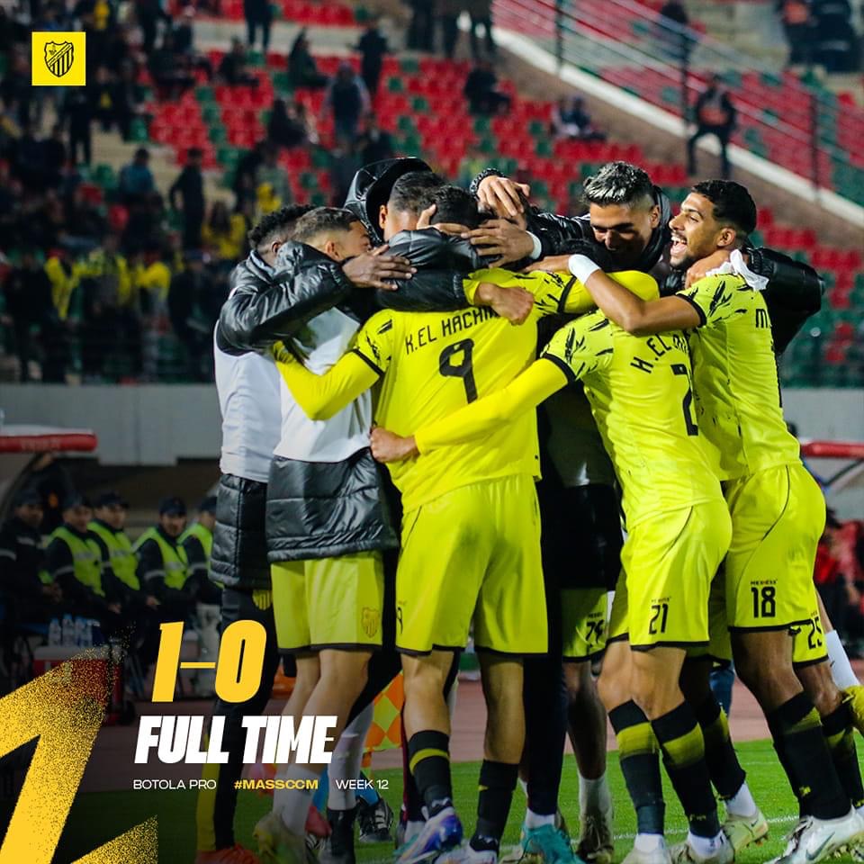 فرحة لاعبي المغرب الفاسي بهدف حمزة أبورزوق